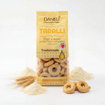 Veri taralli pugliesi tradizionali: friabili, dorati e irresistibilmente genuini, preparati a mano secondo un’antica ricetta della Puglia. Ogni morso racchiude il sapore autentico del territorio, grazie a ingredienti selezionati come farina di grano tenero, olio d’oliva e vino bianco. Perfetti per ogni momento della giornata, conquisteranno il tuo palato con la loro bontà unica.