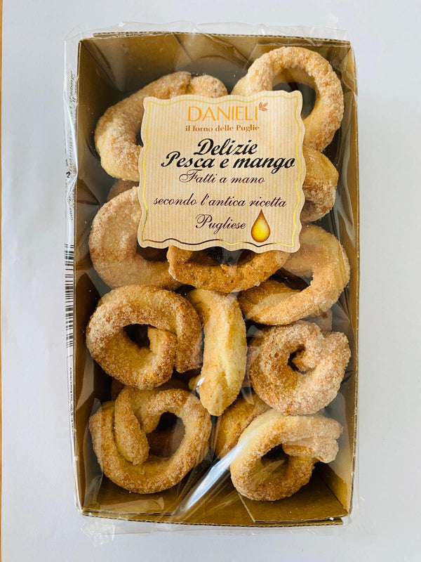 Bocconi friabili dal gusto fruttato, in cui pesca e mango si uniscono in un impasto profumato e leggermente aromatico grazie al vino bianco, per una dolce pausa dal carattere esotico....