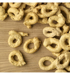 Lasciati conquistare dai taralli pugliesi al finocchio: croccanti, profumati e preparati rigorosamente a mano secondo l’antica tradizione. Il loro sapore autentico, arricchito dal finocchio, regala un’esperienza unica che profuma di Puglia. Perfetti come snack o da condividere in ogni occasione! Provali e porta in tavola la vera essenza della nostra terra.
