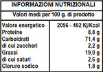 Ingredienti: farina di GRANO tenero tipo "00", olio extra vergine d'oliva, olio di oliva, LIEVITO di birra, VINO bianco, sale.